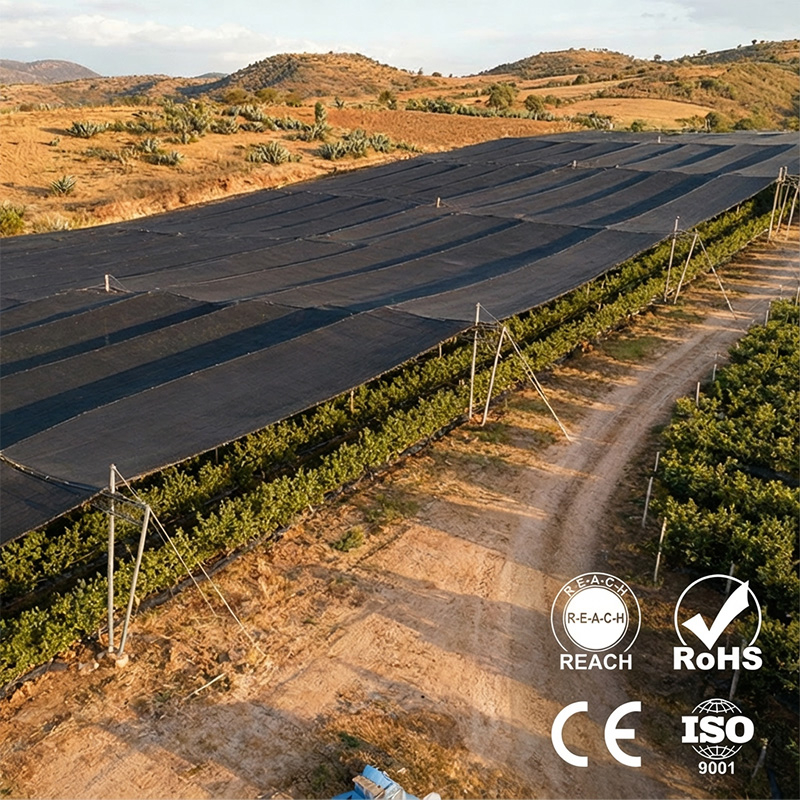 | Περιγραφή | 50% 60% 70% Μαύρο υφασμάτινο δίχτυ σκιάς ανθεκτικό στην υπεριώδη ακτινοβολία για τη γεωργία |